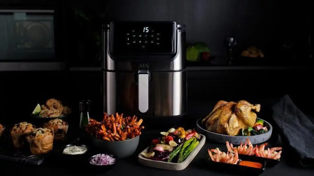 - Luchtfriteuse met 5,4 liter tank. Door de circulatie van de oververhitte lucht worden de ingrediënten uit alle hoeken gekookt, zonder dat olie hoeft te worden toegevoegd.