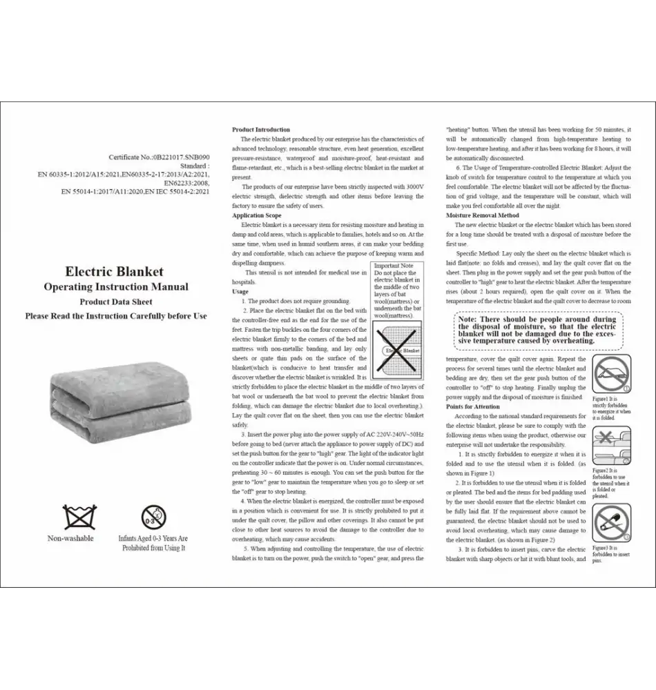 Zorg ervoor dat u de deken na gebruik de tijd geeft om af te koelen voordat u hem opbergt. Als de elektrische Warmte Onderdeken lange tijd niet wordt gebruikt, is het raadzaam om deze in de originele verpakking op een droge plaats te bewaren. Plaats geen voorwerpen op de deken.