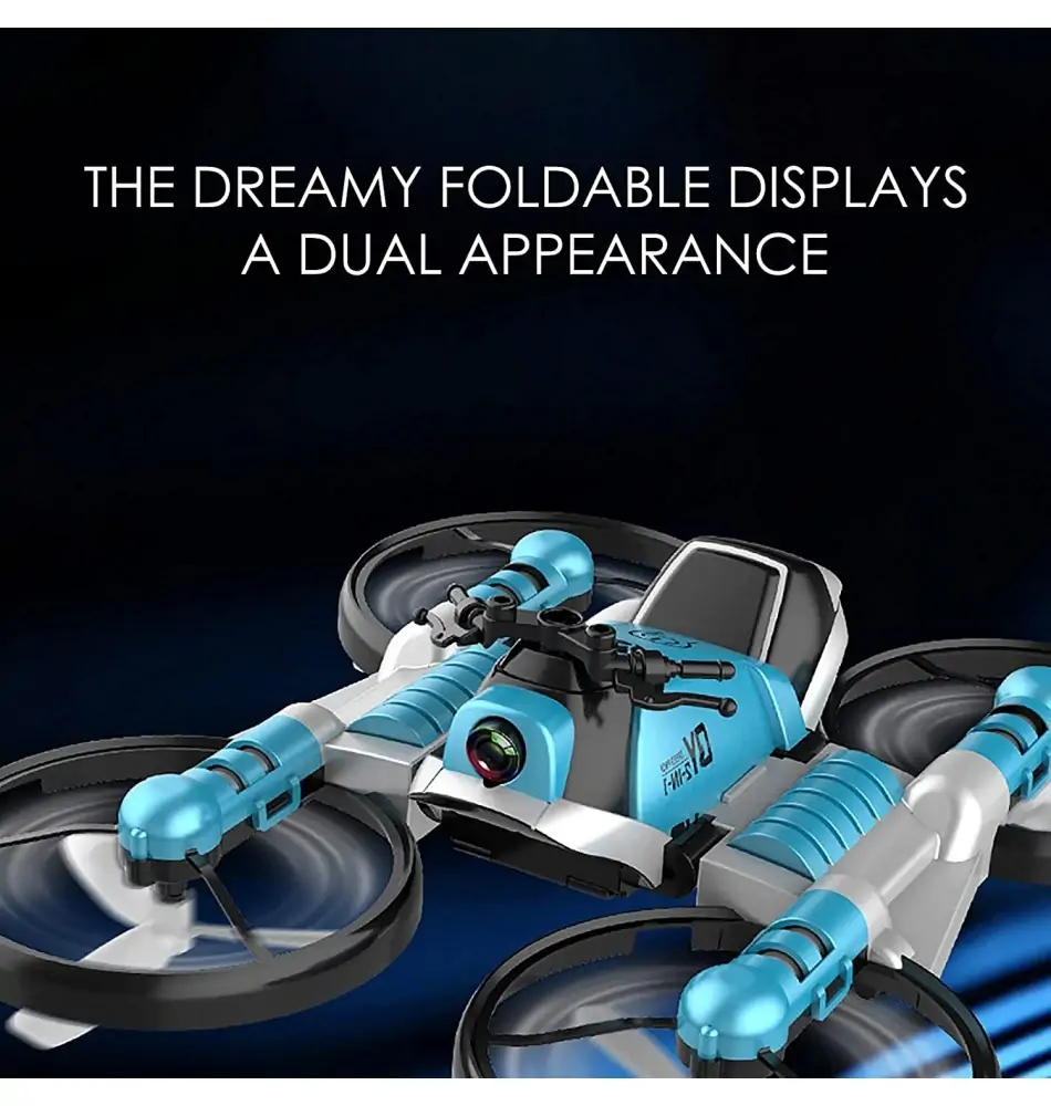 Omschrijving Opvouwbare RC-drone 2-in-1 - Van Drone naar Motorfiets - Quadcopter Drone