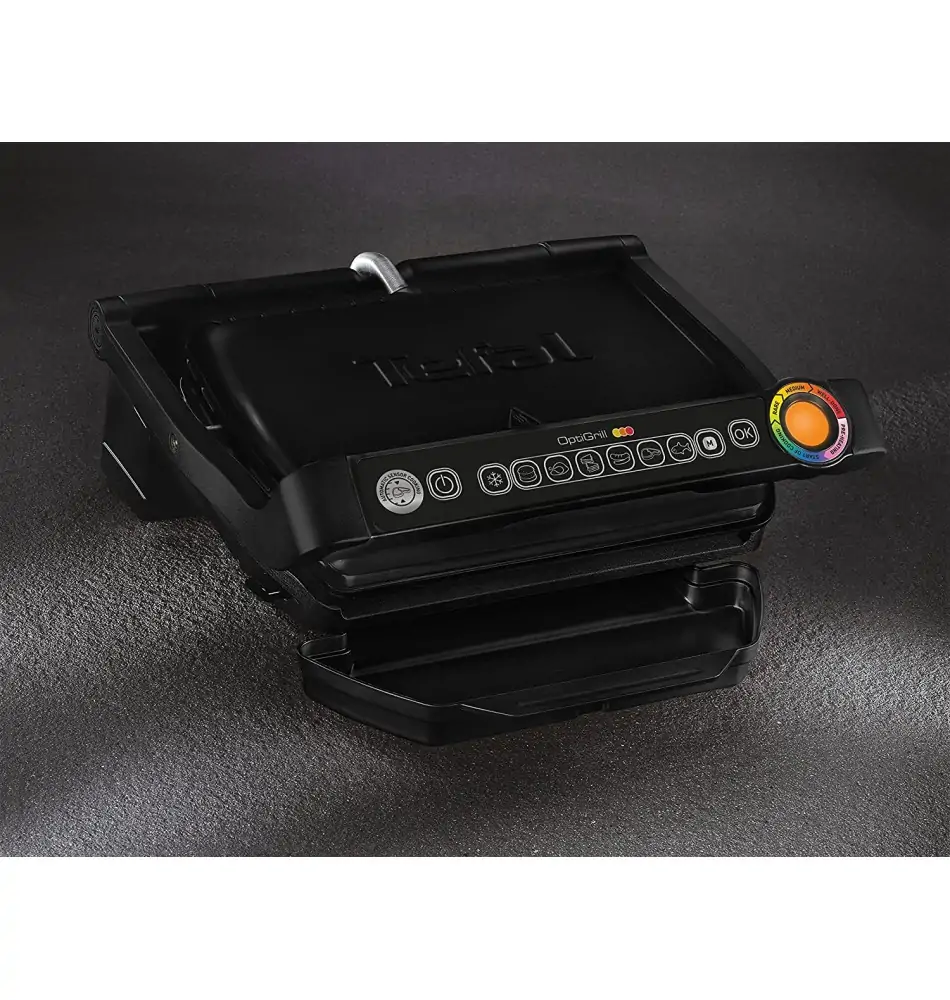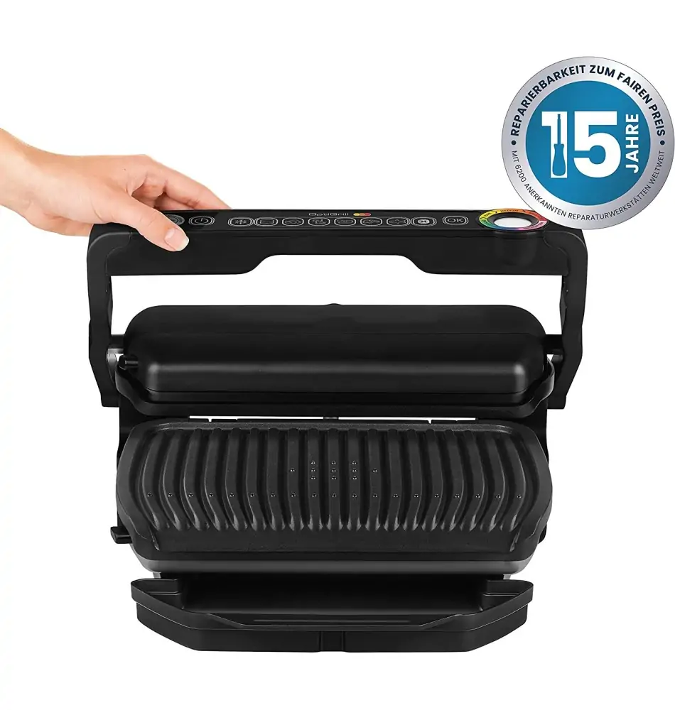 Ontdek de contactgrill OptiGrill en zijn exclusieve technologie. OptiGrill past automatisch de grilltemperatuur en grillcycli aan, afhankelijk van de dikte en het soort te grillen voedsel, voor perfecte grillresultaten. De gaarheid van het vlees wordt aangegeven door een lichtindicator en akoestische signalen, wat nauwkeurige grillresultaten garandeert, of het nu gaat om rood, medium of doorbakken. Dankzij de 6 vooraf ingestelde programma’s: hamburgers, gevogelte, sandwiches, worstjes, steaks en vis en de 2 extra programma’s: ontdooifunctie en handmatig, worden alle gerechten perfect gegrild. De gegroefde grillplaten met antiaanbaklaag bieden een grilloppervlak van ca. 600 cm² voor 2 tot 4 personen en een extra grote sapopvangbak helpt de keuken schoon te houden. Stiftung Warentest bevestigd! In de test van mei 2020 maakte de OptiGrill indruk als