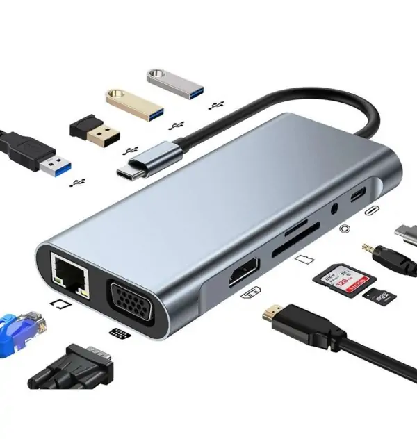 USB-Hub 11 in 1 USB-C Hub Docking Station Type-C Adapter
